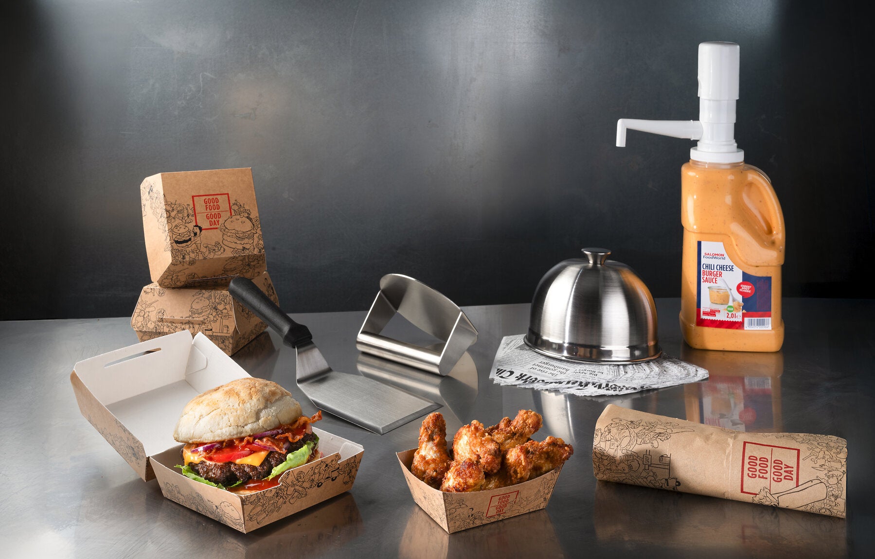 Burgerboxen, Smasher, Dippumpen oder Wrap-Paper: Diese und viele weitere Non-Food-Artikel können hier in unserem Non-Food-Shop direkt bestellt werden.